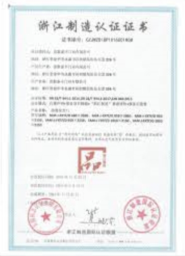 2018年底通過“浙江制造”品質認證